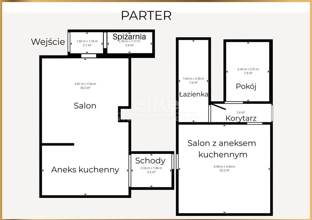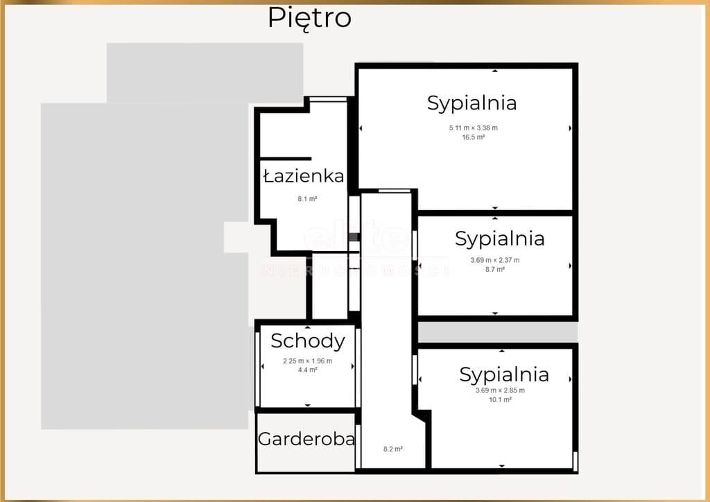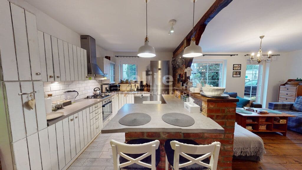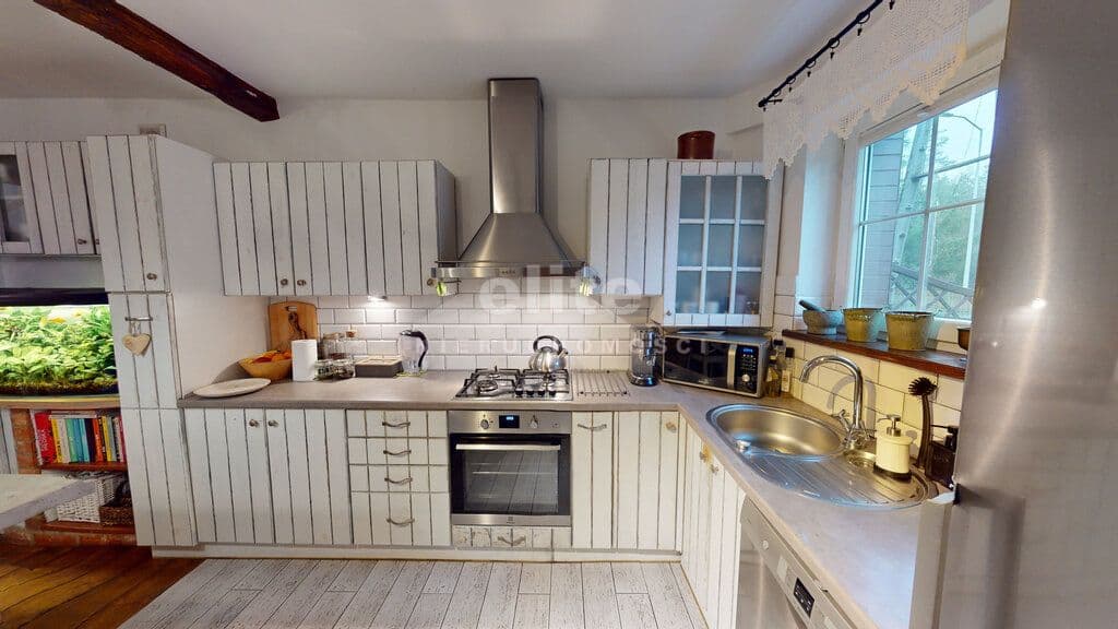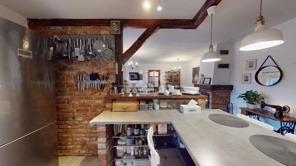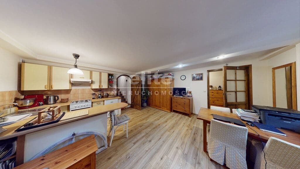 Nieruchomość składa się łącznie z 6 pokoi, 2 łazienek, 2 kuchni, przedpokoju, garderoby i spiżarni (piwniczki).