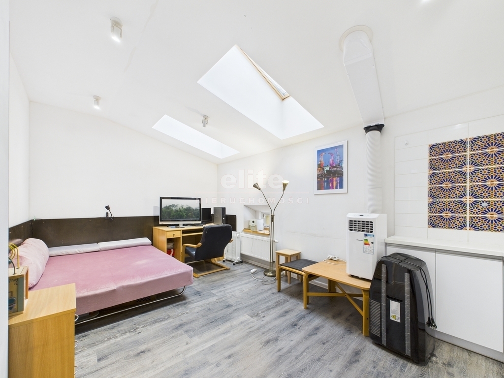 Mieszkanie powstało z adaptacji poddasza oddanej do użytkowania w 2015 roku, a znajduje się w kamienicy z około 1930 roku.