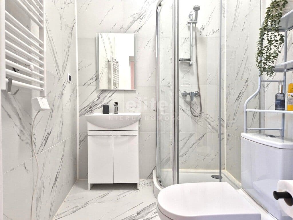 * łazienka z prysznicem, wc i umywalką
