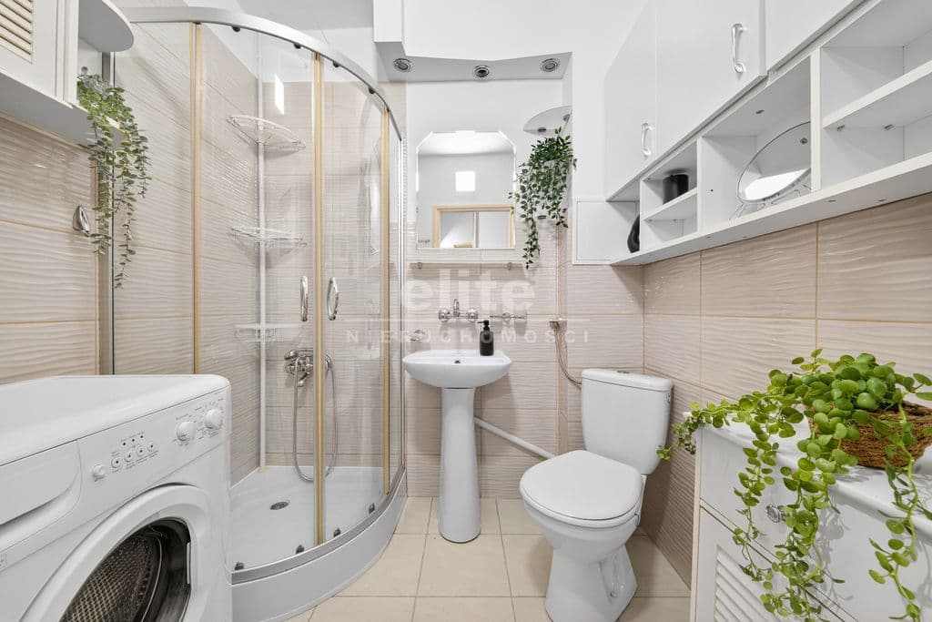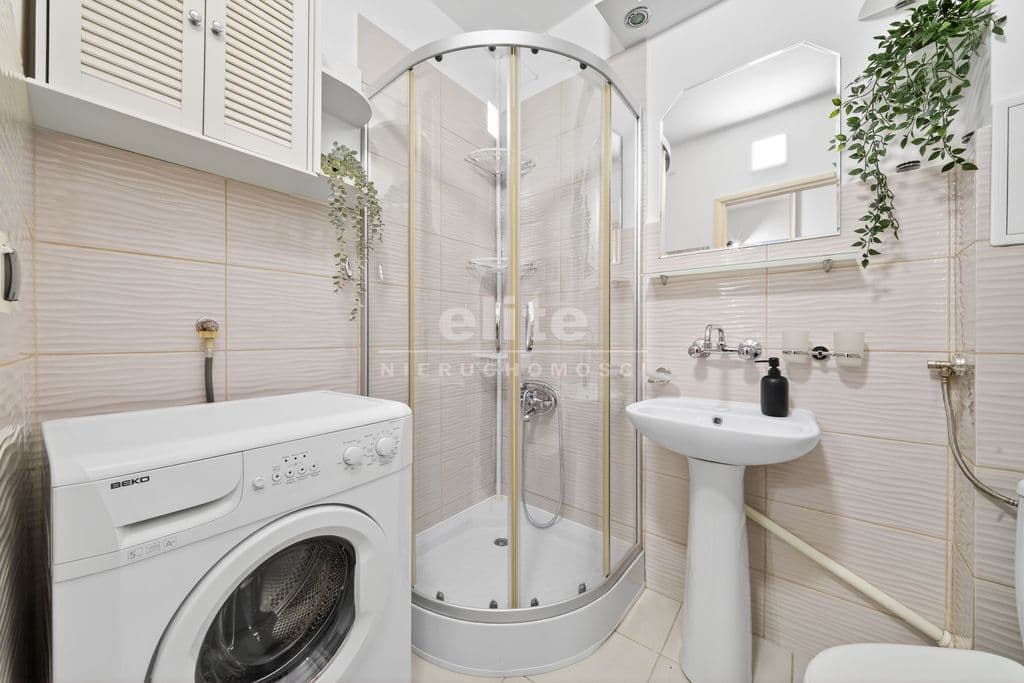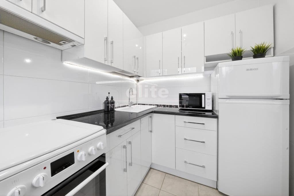 Lokal jest wyposażony w pralkę, lodówkę, mikrofalę, kuchenkę elektryczną z płytą gazową, sofę oraz dużą szafę w przedpokoju.