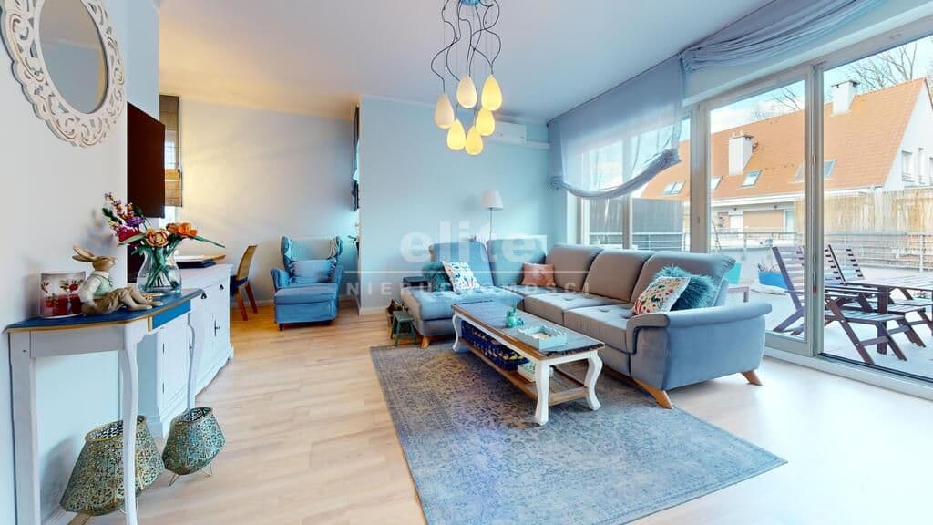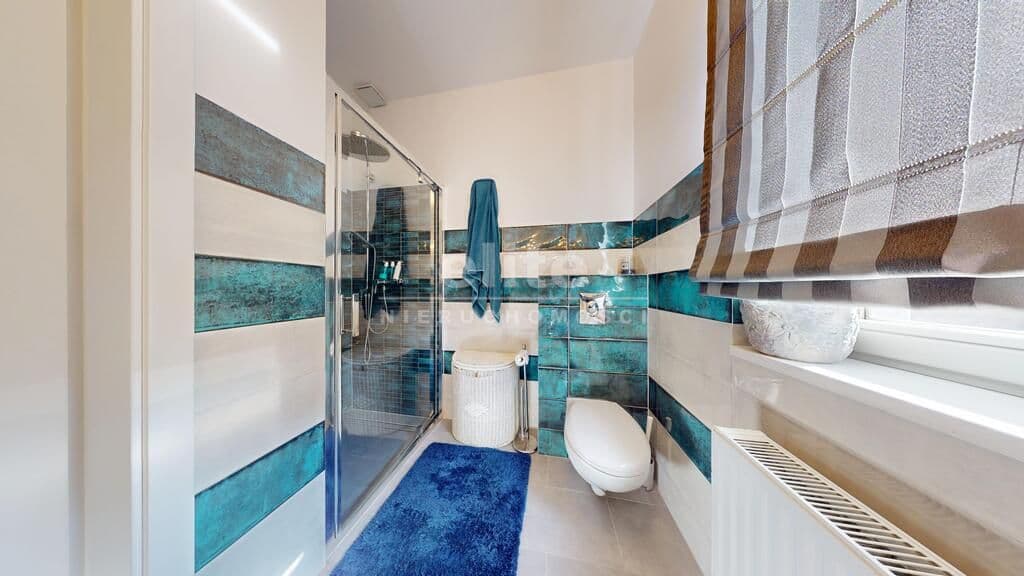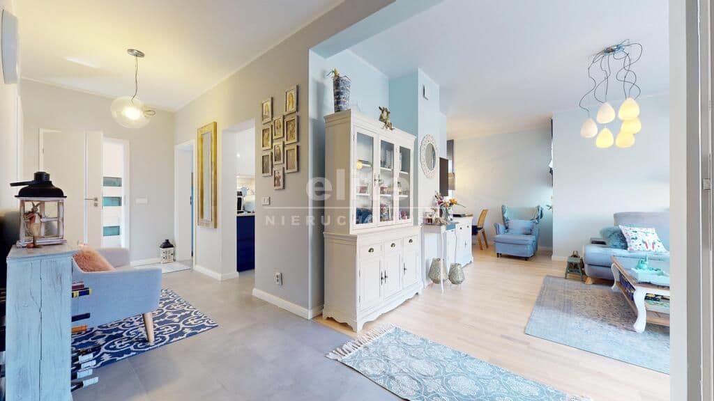 Apartament sprzedawany jest przez pierwszych właścicieli którzy wykończyli go dla siebie przy użyciu najwyższej jakości materiałów. Nieruchomość jest klimatyzowana a ogrzewanie pochodzące z SEC-u zapewnia wygodę przez cały rok. Okna zostały zabezpieczone roletami antywłamaniowymi. Podłogi w apartamencie zostały wyłożone deską; jesionem bielonym oraz glazurą, ściany gładzone malowane. Kuchnia zabudowana meblami na wymiar ze sprzętem AGD. Komfortowe i wygodne łazienki, dodatkowo pralnia, spiżarnia i garderoba. W lokalu nie ma gazu a liczniki, przyłącza i filtry wody znajdują się w garażu.