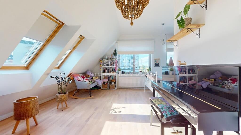 Przedmiotem sprzedaży jest dwupiętrowy apartament z poddaszem użytkowym i garażem (zakup obligatoryjny za dodatkowe 100 tys.)