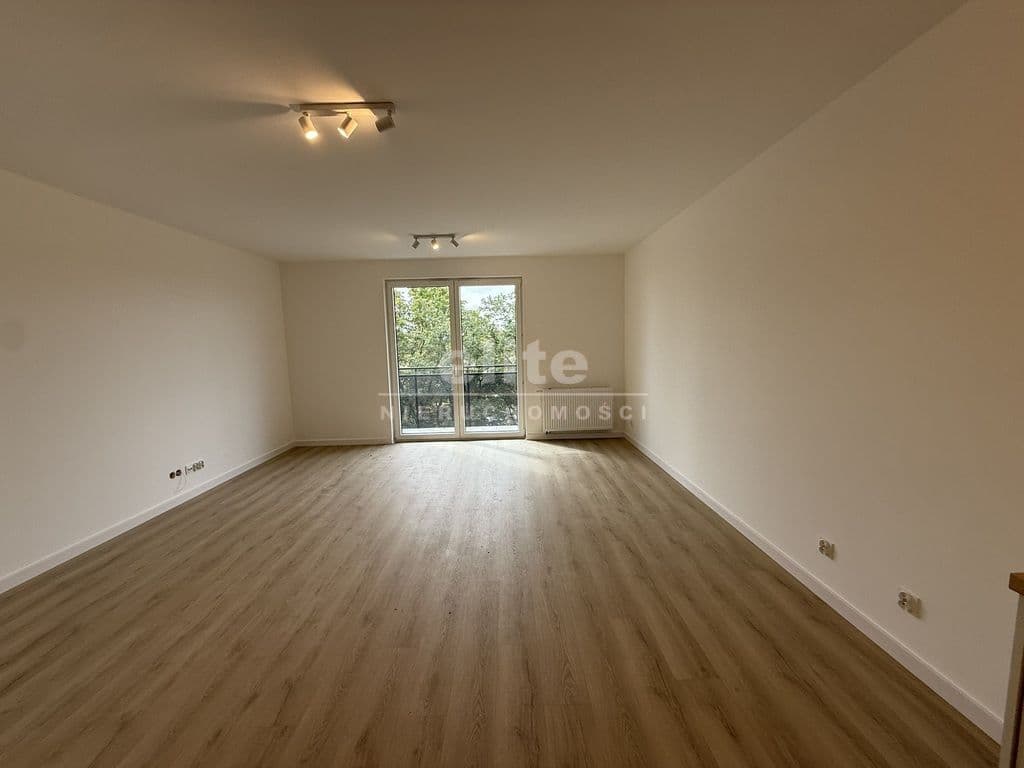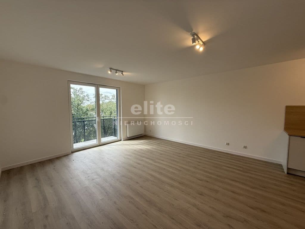 - Układ: przestronny salon z aneksem kuchennym, łazienka z prysznicem, balkon z widokiem na zieleń