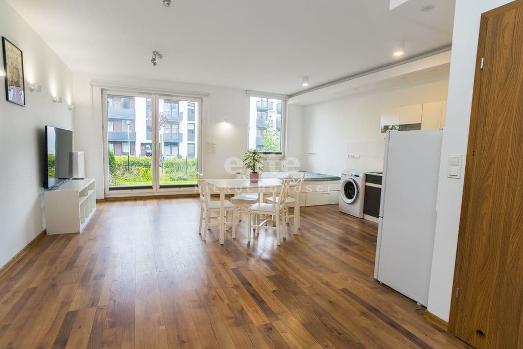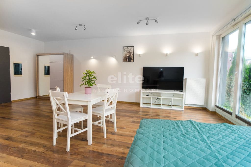 Nieruchomość o funkcjonalnym rozkładzie pomieszczeń, (przearanżowana z dwupokojowego mieszkania w otwartą formę) z oddzielną kuchnią, ogrodem i miejscem na taras.