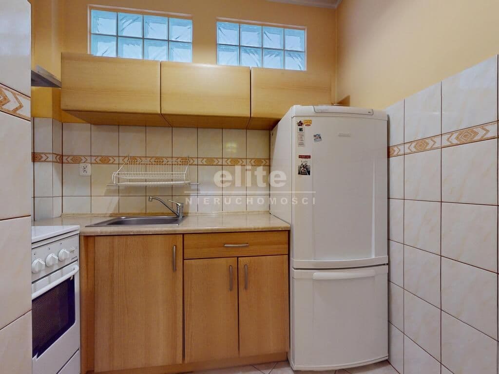 Łazienka w glazurze i terakocie. Kuchnia w zabudowie.
