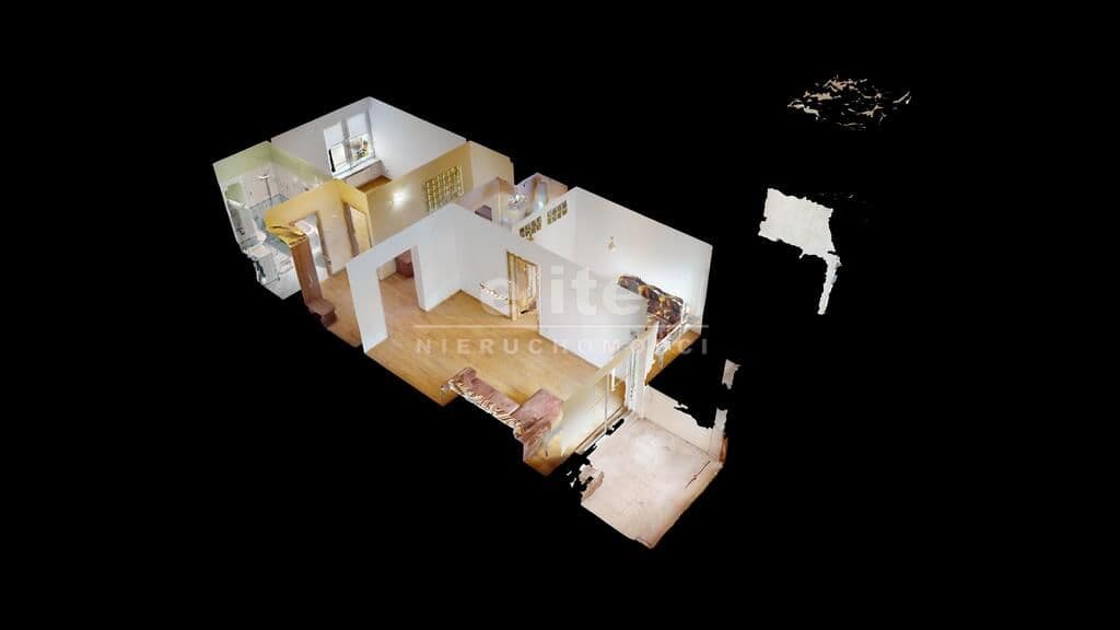 Mieszkanie obecnie składa się z trzech pokoi - jeden z nich powstał z pierwotnej kuchni. Kuchnia została przeniesiona do pomieszczenia po garderobie (w księdze wieczystej lokal widnieje jako dwupokojowy z osobną kuchnią i garderobą).