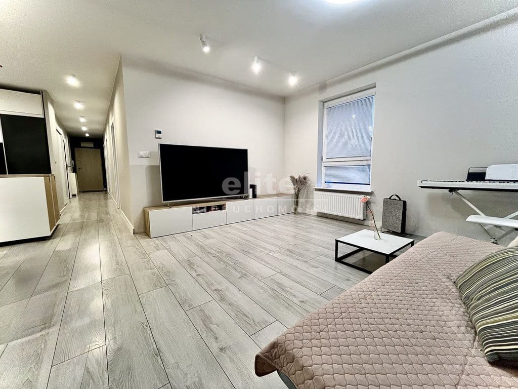 - Przestronny, jasny salon z aneksem 34m² z wyspą kuchenną, wyposażony w płytę grzewczą, lodówkę, piekarnik, zmywarkę w zabudowie