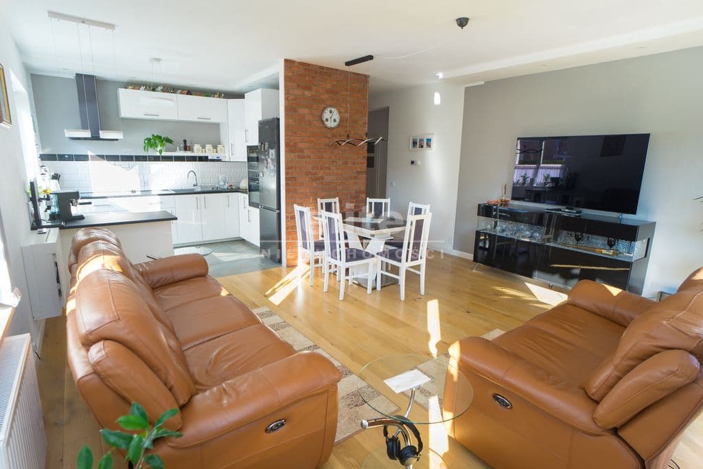 Wyposażenie mieszkania w cenie: lodówka, pralka, TV, kuchenka, piekarnik, meble w pokojach i kuchni (za wyjątkiem 2 skórzanych kanap w salonie).