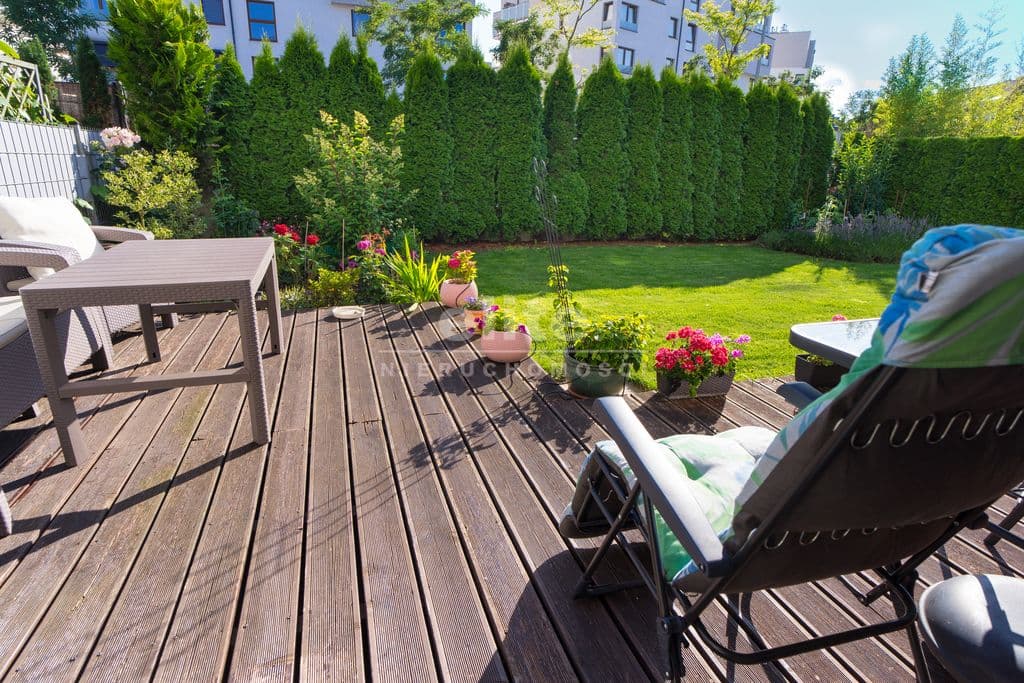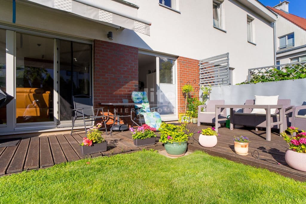 Do mieszkania przynależy ogród o pow. 180 m2, w którym znajduje się drewniana szopka na kosiarkę i narzędzia ogrodowe.