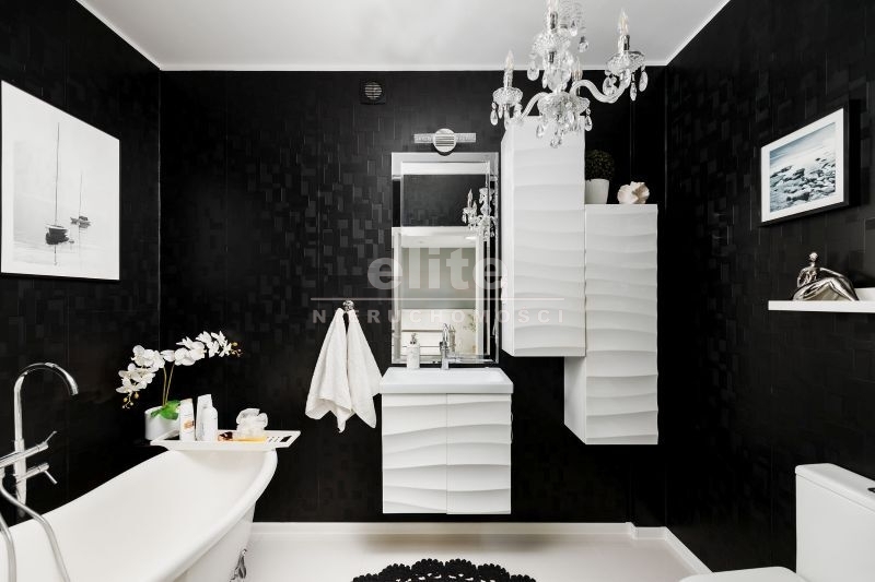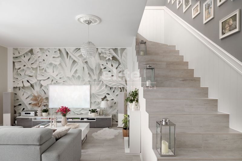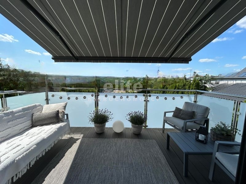 W każdej sypialni zainstalowano klimatyzację z funkcją sterowania przez Wi-Fi. Na tarasie znajduje się automatyczna markiza. Okna wyposażono w rolety antywłamaniowe sterowane pilotem.