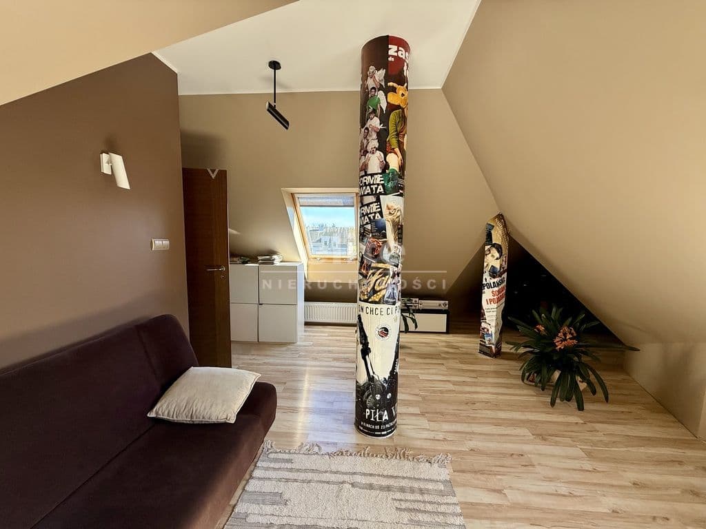 Na drugi poziom prowadzą starannie wykonane schody z drewna bukowego.