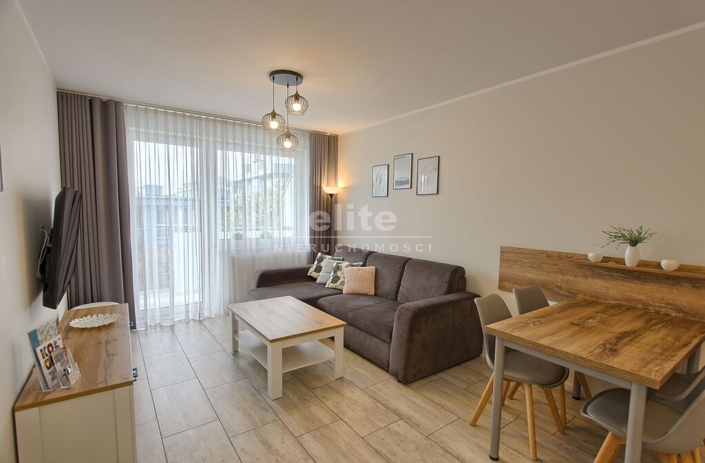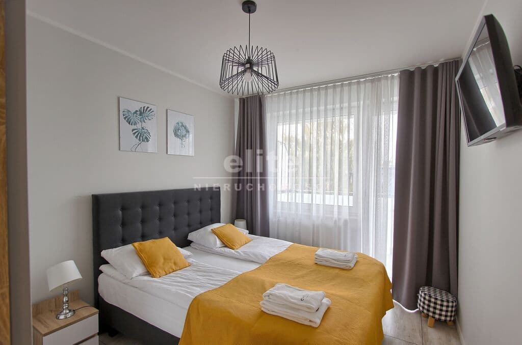 Apartament umeblowany, ładnie i wygodnie urządzony. Powierzchnia to prawie 38 m2. Składa się z salonu z rozkładaną kanapą, w pełni wyposażonego aneksu kuchennego oraz sypialni z łożem małżeńskim i łazienki z prysznicem. Dodatkowym atutem jest taras na który można wyjść z sypialni, jak i z salonu. W budynku znajduje się siłownia, rowerownia, a na dachu taras z leżakami. Teren obiektu jest ogrodzony. Budynek wybudowany przez solidnego kołobrzeskiego dewelopera, dobrze zarządzany. Koszty utrzymania to około 600 zł. Ogrzewanie i ciepła woda z sieci miejskiej.