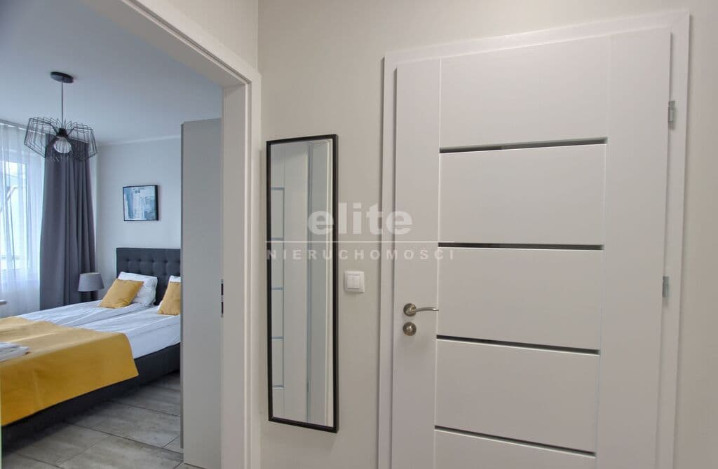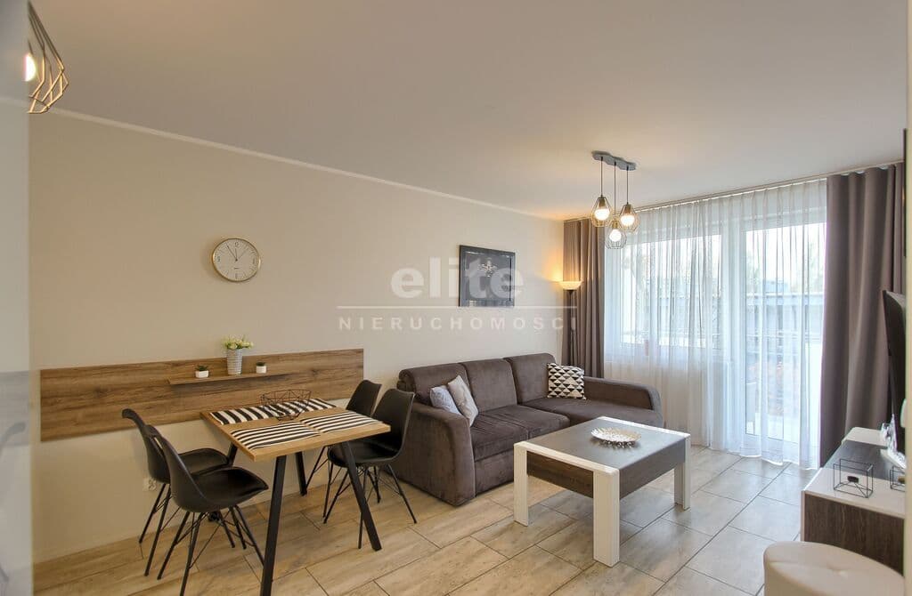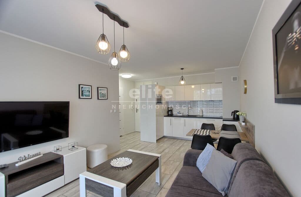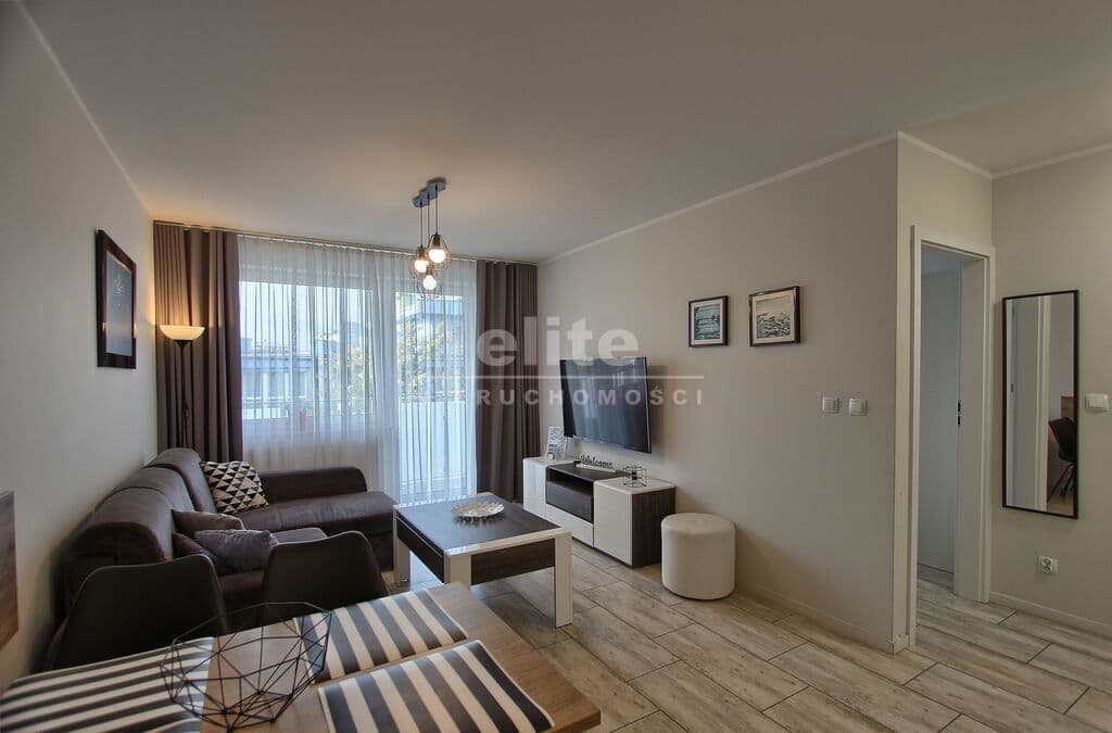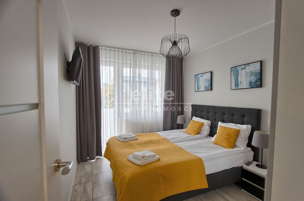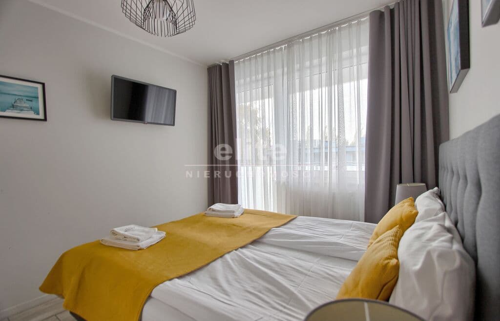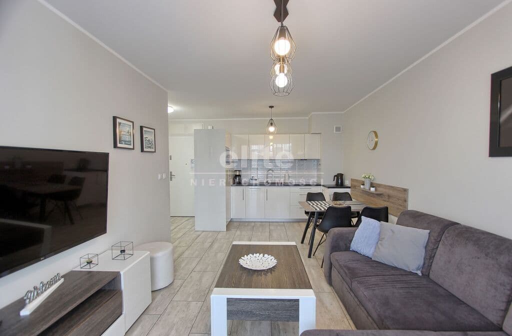 Apartament umeblowany, ładnie i wygodnie urządzony. Powierzchnia to prawie 38 m2. Składa się z salonu z rozkładaną kanapą, w pełni wyposażonego aneksu kuchennego oraz sypialni z łożem małżeńskim i łazienki z prysznicem. Dodatkowym atutem jest taras na który można wyjść z sypialni, jak i z salonu. W budynku znajduje się siłownia, rowerownia, a na dachu taras z leżakami. Teren obiektu jest ogrodzony. Budynek wybudowany przez solidnego kołobrzeskiego dewelopera, dobrze zarządzany. Koszty utrzymania to około 600 zł. Ogrzewanie i ciepła woda z sieci miejskiej.