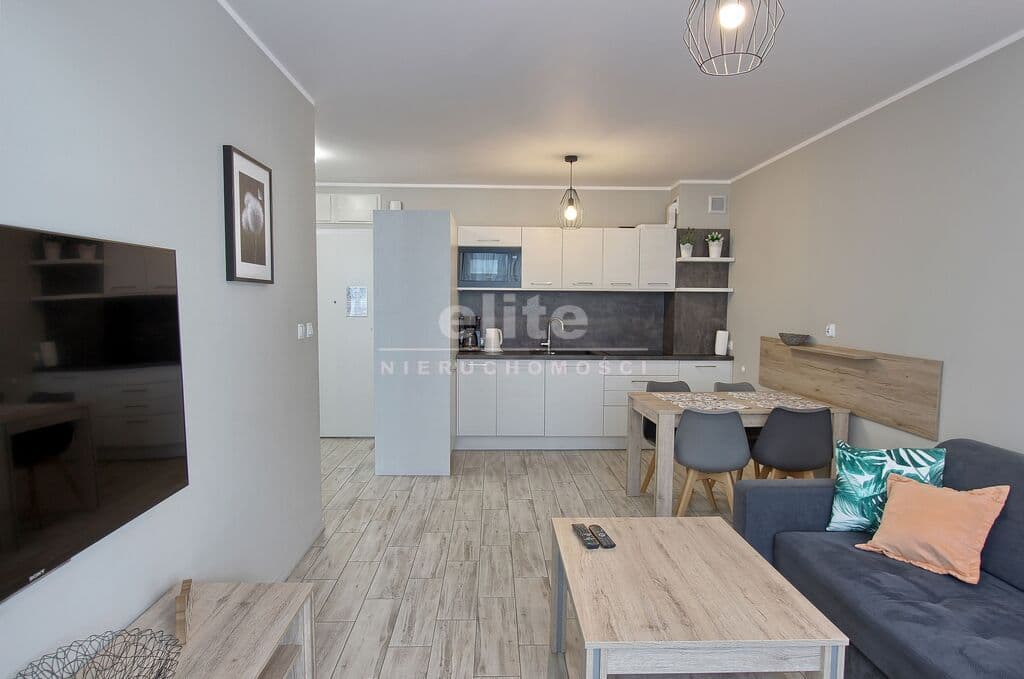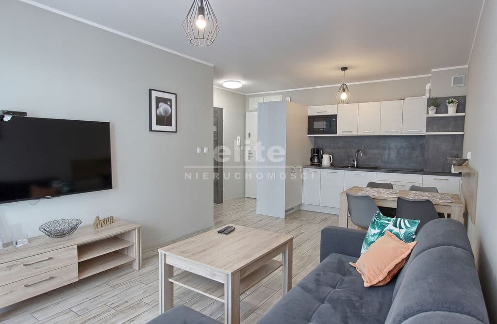 Apartament umeblowany, ładnie i wygodnie urządzony. Powierzchnia to prawie 38 m2. Składa się z salonu z rozkładaną kanapą, w pełni wyposażonego aneksu kuchennego oraz sypialni z łożem małżeńskim i łazienki z prysznicem. Dodatkowym atutem jest taras na który można wyjść z sypialni, jak i z salonu. W budynku znajduje się siłownia, rowerownia, a na dachu taras z leżakami. Teren obiektu jest ogrodzony. Budynek wybudowany przez solidnego kołobrzeskiego dewelopera, dobrze zarządzany. Koszty utrzymania to około 600 zł. Ogrzewanie i ciepła woda z sieci miejskiej.