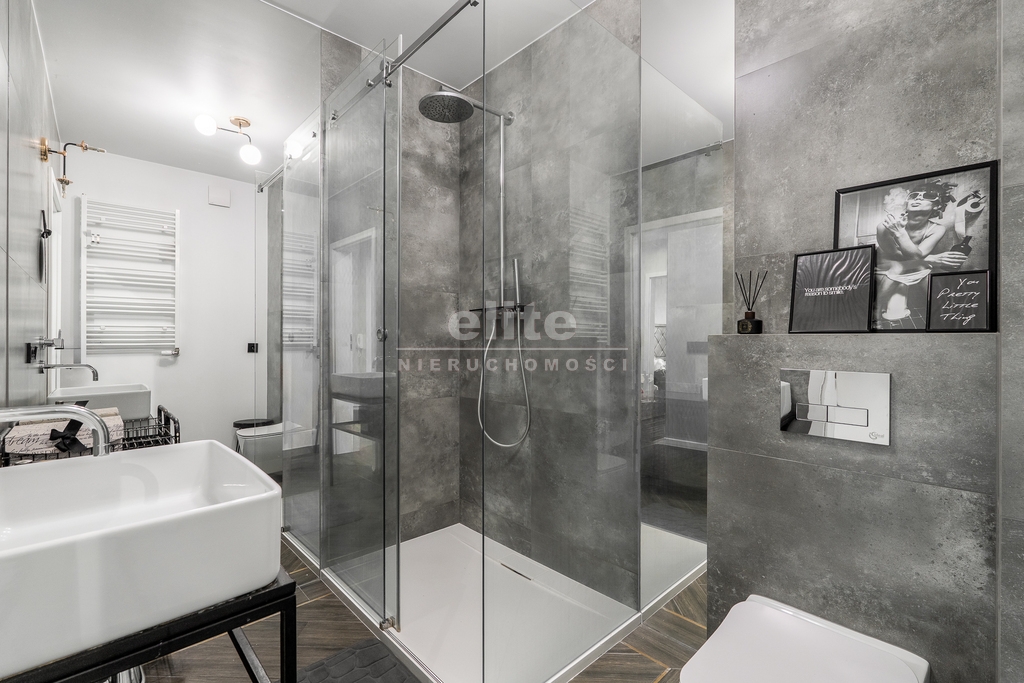 - Łazienka: Nowoczesna, z wygodną strefą prysznicową.