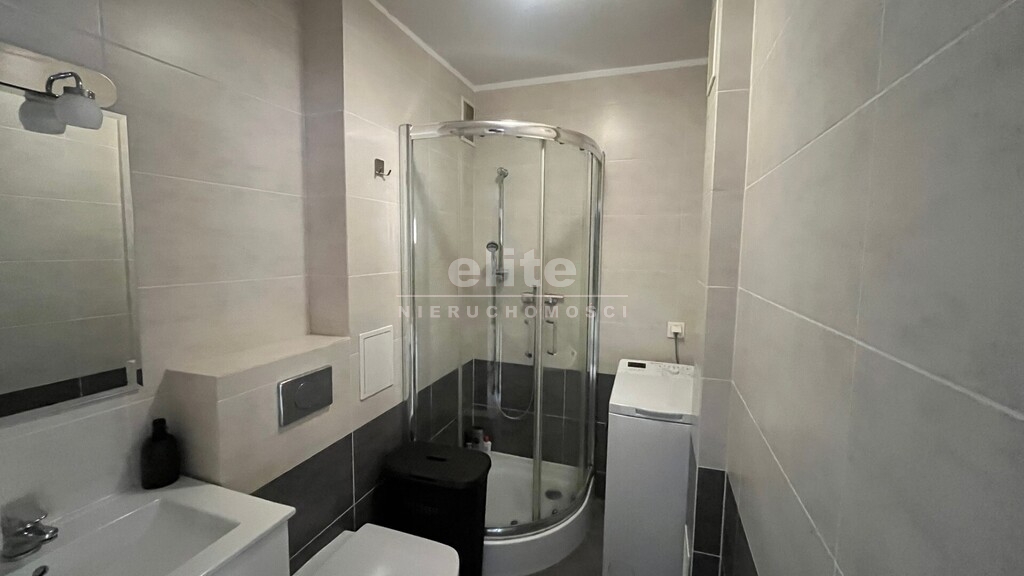 Na podłodze panele i kafle, na ściany gładzone malowane. Łazienka z kabiną prysznicową wykończona w glazurze i terakocie.