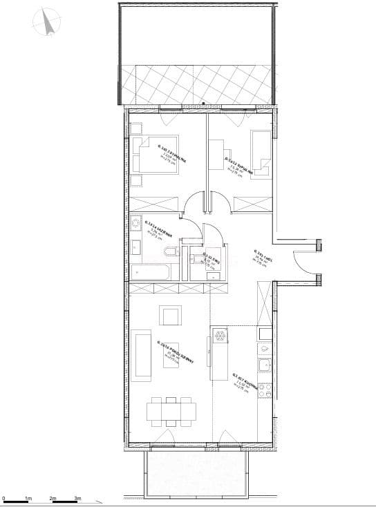 - 2 sypialni (12,58 m2 i 10,34 m2) z wyjściem na taras (9,81 m2) i ogródek (14,70 m2),