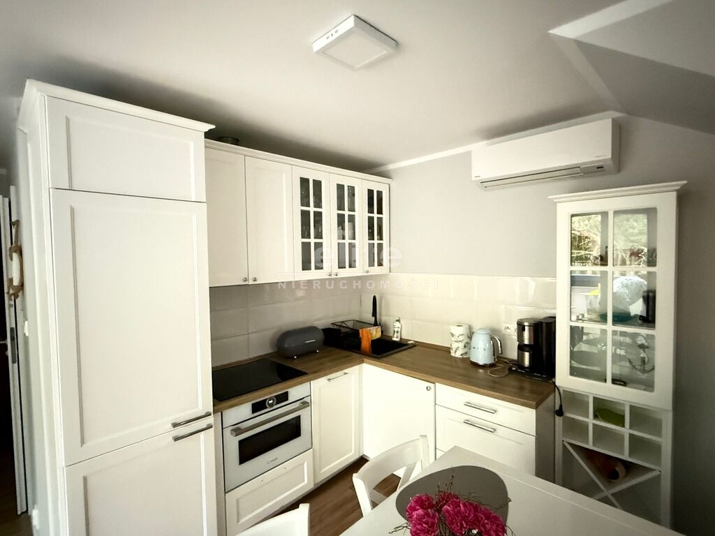 Na I poziomie hol, łazienka, duży pokój połączony z aneksem kuchennym oraz zamykana oddzielna sypialnia. Balkon z widokiem na las iglasty.