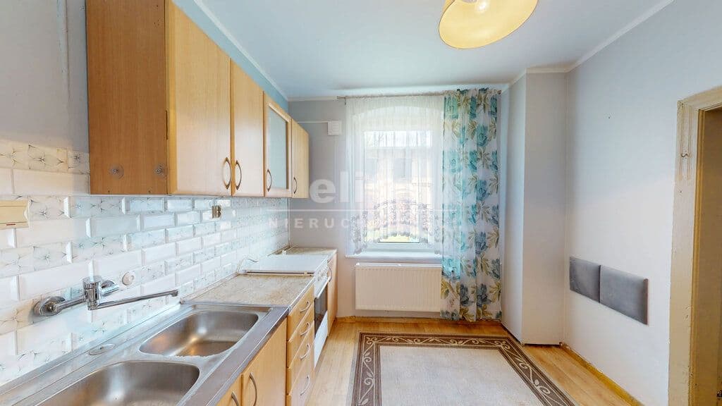 - Kuchnia: Widna i oddzielna kuchnia wyposażona w podstawowe meble oraz sprzęt AGD (kuchenka elektryczna z piekarnikiem). Funkcjonalna przestrzeń gotowa do użytkowania lub modernizacji według własnego gustu.