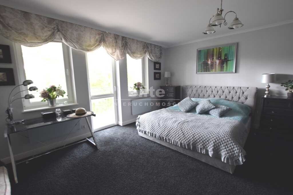 Z salonu i pokoju sypialnego (I i II kondygnacja) wyjście na bardzo duży balkon/taras, wystawa okien od strony wschodniej.