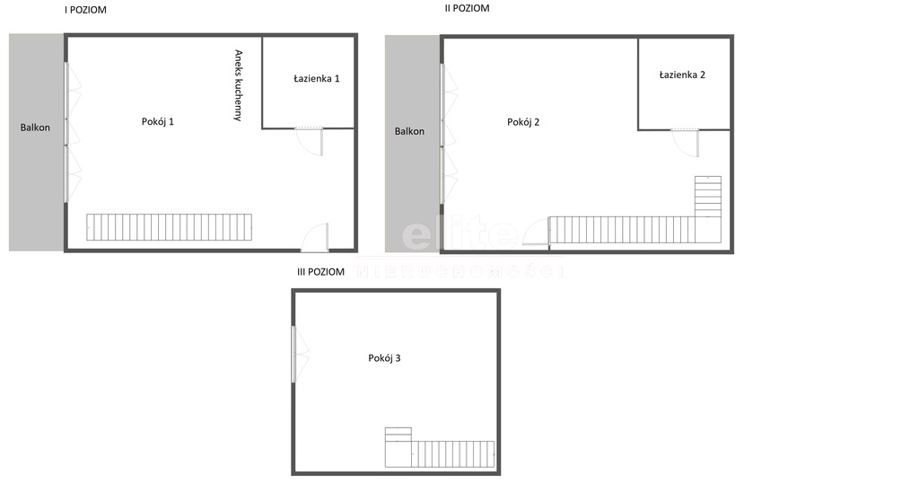 - I kondygnacja - pokój dzienny/ salon ( z wyjściem na balkon/taras) z kuchnia w formie aneksu, łazienka z kabiną prysznicową oraz toaletą,