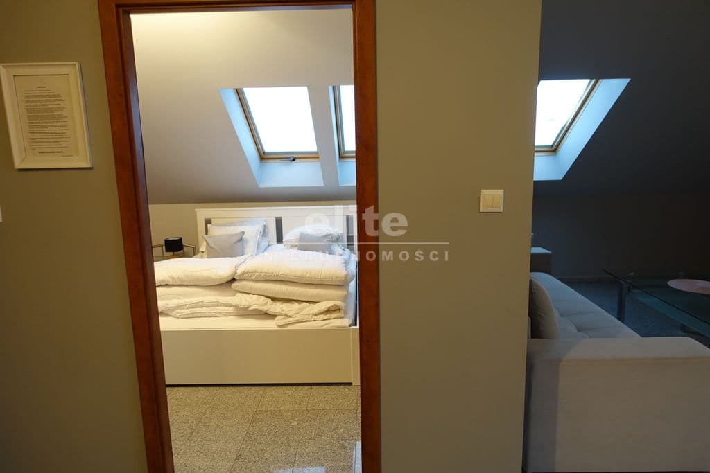Apartament dwupoziomowy. Każdy poziom stanowi oddzielny apartament z oddzielnym wejściem z klatki schodowej, umeblowany i wyposażony w przedmioty niezbędne do codziennego użytku. W każdym z nich jest salon z aneksem kuchennym, sypialnia, łazienka i balkon. Idealny jako gotowy produkt inwestycyjny.