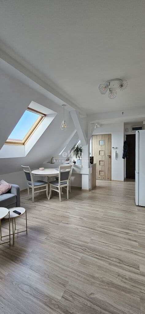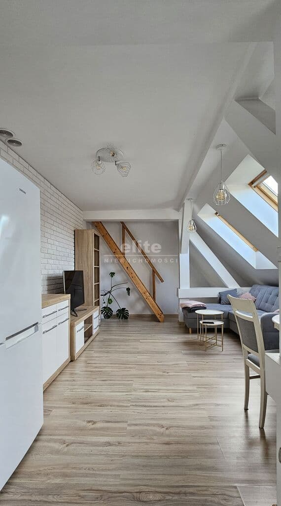 Przedmiotem oferty jest słoneczne mieszkanie dwupokojowe, położone na 5 piętrze w odnowionej kamienicy na ul. Naruszewicza. Kilka lat temu kamienica przeszła generalny remont, wymieniony dach, odnowiona klatka, ocieplona elewacja, nowe instalacje. Mieszkanie ma 50m2 powierzchni całkowitej, 30,67m2 powierzchni użytkowej. W skład wchodzi pokój z aneksem kuchennym, aneks w ergonomicznie zaaranżowanej zabudowie meblowej, z piekarnikiem, płytą elektryczną i lodówką w cenie. Na tym poziomie spora łazienka z oknem, z kabiną prysznicową i pralką. Na I poziom prowadzą drewniane schody, tam znajduje się jasne pomieszczenie pomocnicze - antresola, aktualnie zaaranżowana na sypialnię z szafą. Całość mieszkania utrzymana w jasnych barwach; ściany gładzone, malowane na biało; na podłogach panele wysokiej klasy, w łazience gres. Każdoczesny właściciel mieszkania ma dostęp do suchej i nowej suszarni drzwi obok. Oferta jest doskonałą propozycją dla młodych ludzi, bardzo niewielkie koszty utrzymania, przy zużyciu 4m3 wody, czynsz jedynie 226 zł. Dodatkowo ogrzewanie gazowe, latem koszt ok 40 zł/m2, zimą 300 zł/m2, prąd wg zużycia. Bardzo polecam z uwagi na standard wykonania i idealną lokalizację.