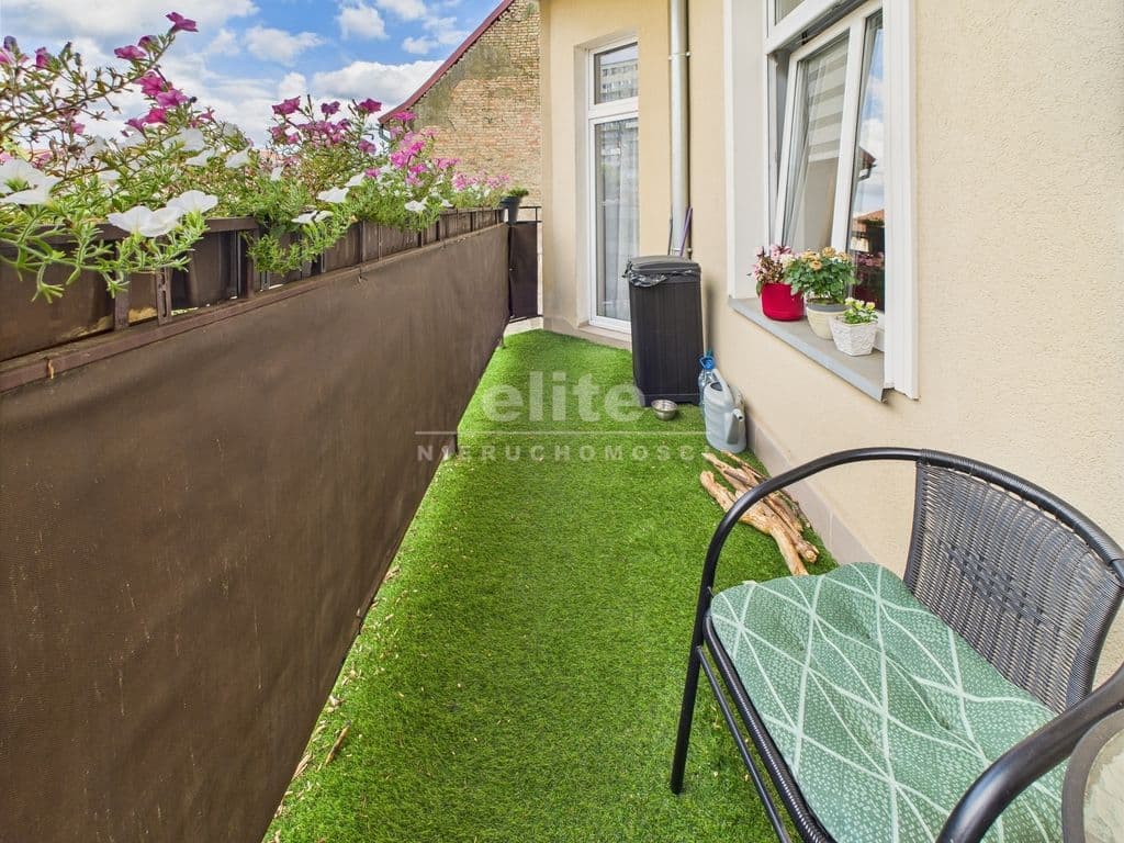 Do mieszkania przynależy balkon z ekspozycją południową – z pięknie ukwieconym parapetem, idealny na poranną kawę. Całość utrzymana jest w spójnym, estetycznym stylu – z dużą dbałością o detale i funkcjonalność. Wnętrza łączą klasyczny charakter kamienicy z nowoczesnym komfortem.