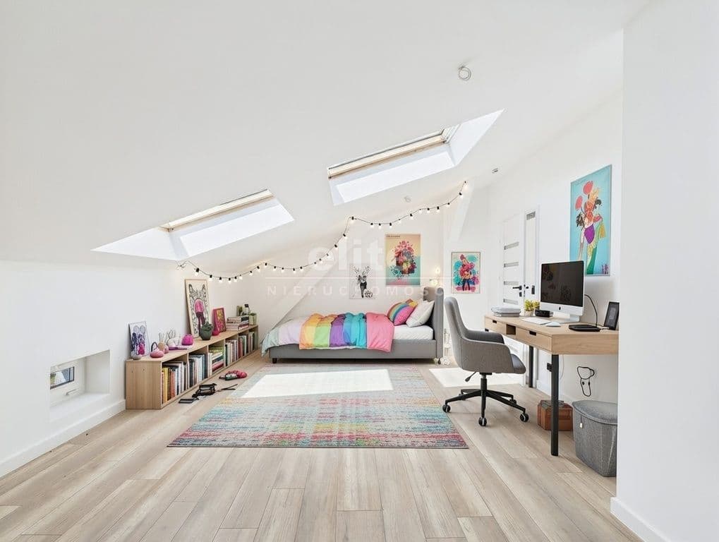 • duże okna dachowe – świetne doświetlenie i przyjemny klimat wnętrza