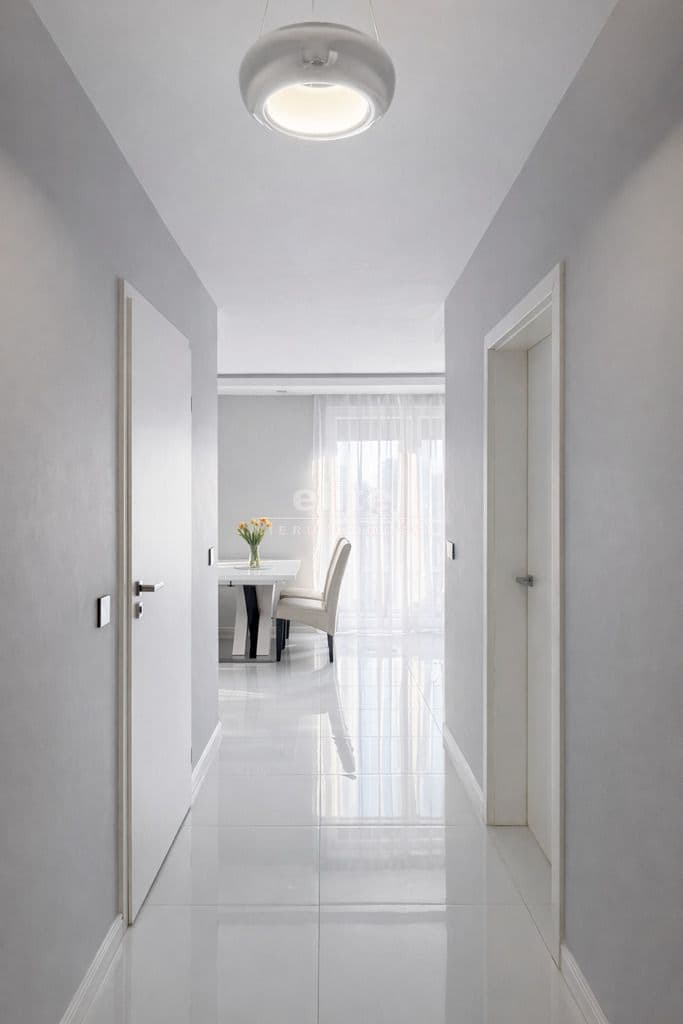 Na powierzchni 67,63 m² zaprojektowano przestrzeń, która od pierwszego wejścia robi wrażenie proporcjami i światłem. Południowo-wschodnia ekspozycja sprawia, że wnętrze jest jasne i przyjemne przez cały dzień, podkreślając starannie dobrane materiały i kolorystykę.