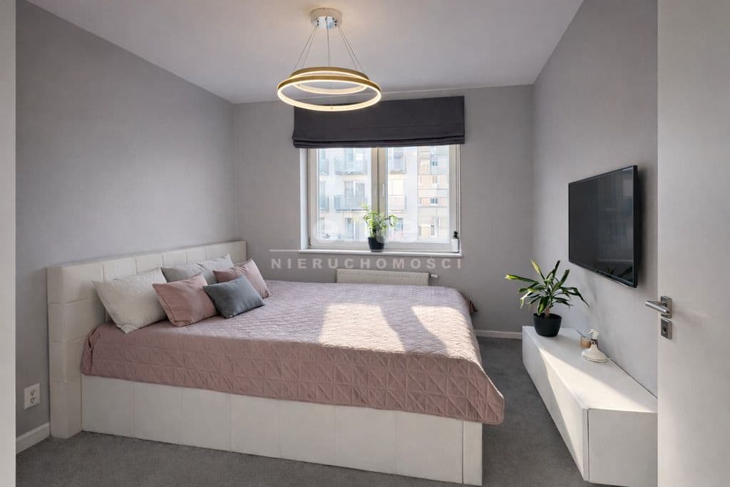 Dwie niezależne sypialnie zapewniają komfort i intymność domownikom, a oddzielna garderoba podkreśla apartamentowy charakter nieruchomości. Elegancka łazienka oraz starannie zaprojektowany przedpokój dopełniają całości, tworząc wnętrze dopracowane w każdym detalu.