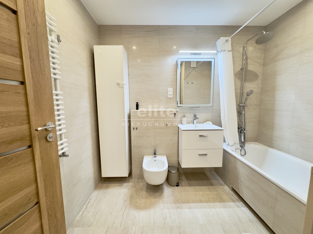 Mieszkanie jest wykończone z dbałością o każdy szczegół, bardzo dobrymi materiałami, na podłodze panele laminowane, ściany wykończone flizeliną, wszystkie zabudowy pod wymiar, szafy typu komandor.