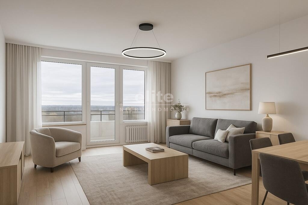 przestronnego salonu z dużym balkonem i pięknym, otwartym widokiem,