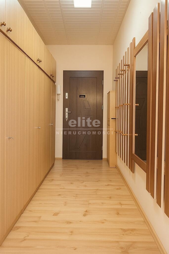 duży, przestronny korytarz z miejscem na szafy w zabudowie.