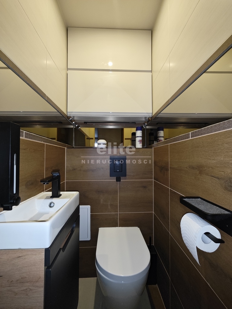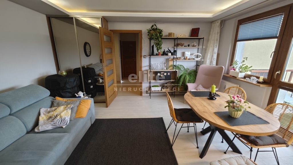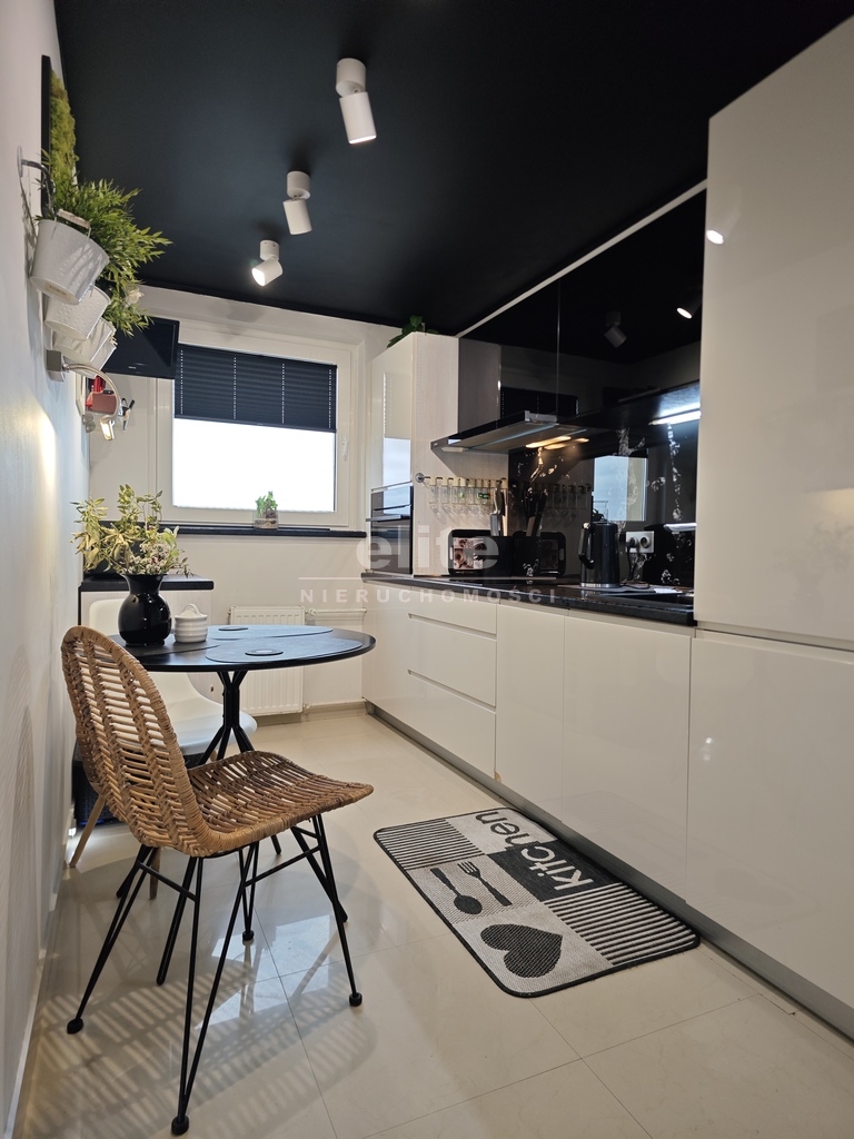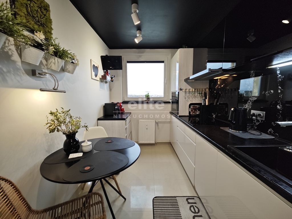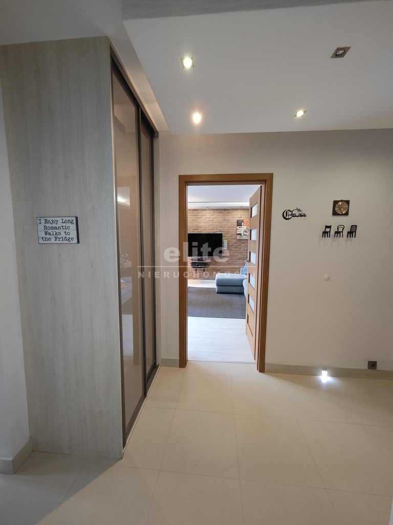 Mieszkanie składa się z dużego salonu z wyjściem na balkon, sporej sypialni, osobno kuchni z oknem, łazienki, osobno toalety oraz przedpokoju. Z balkonu piękny widok na rozciągający się za pobliskimi budynkami - Las Arkoński. Wszystkie pomieszczenia są rozsądnych rozmiarów. Mieszkanie oferowane jest do sprzedaży w dobrym standardzie. W salonie jedna ze ścian ozdobnie wykończona imitacją czerwonej cegły, reszta ścian w pokojach - tynki natryskowe. W obu pokojach i kuchni sufit częściowo obniżony plus ozdobne oświetlenia. Na podłodze w pokojach panele (trzyletnie). W kuchni meble w zabudowie plus sprzęt AGD (roczna zmywarka, dwuletni piekarnik, lodówka, płyta grzewcza i okap). W łazience m.in. duża kabina prysznicowa, umywalka oraz grzejnik drabinkowy. W kuchni i łazience - duże kafle na podłodze. Toaleta wyremontowana dwa lata temu. W cenie pozostają trzy szafy typu Komandor - po jednej w każdym pokoju i trzecia w przedpokoju.