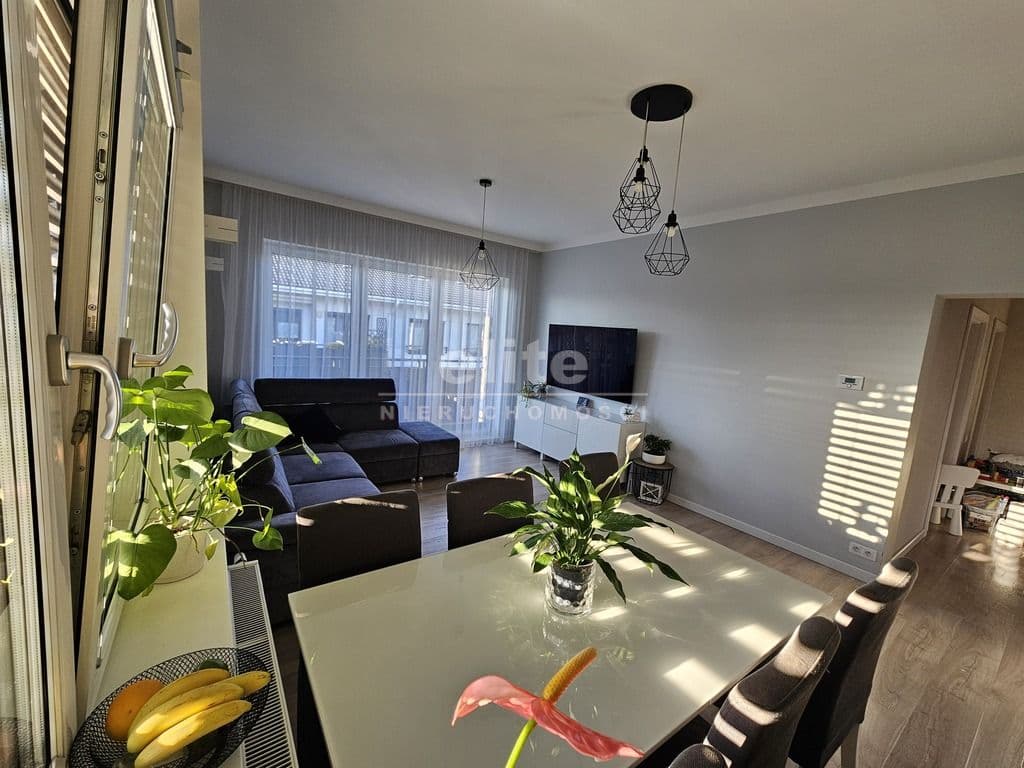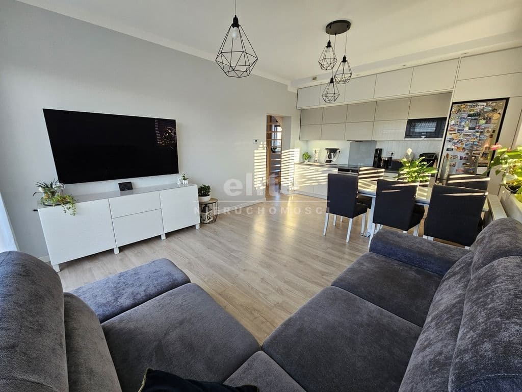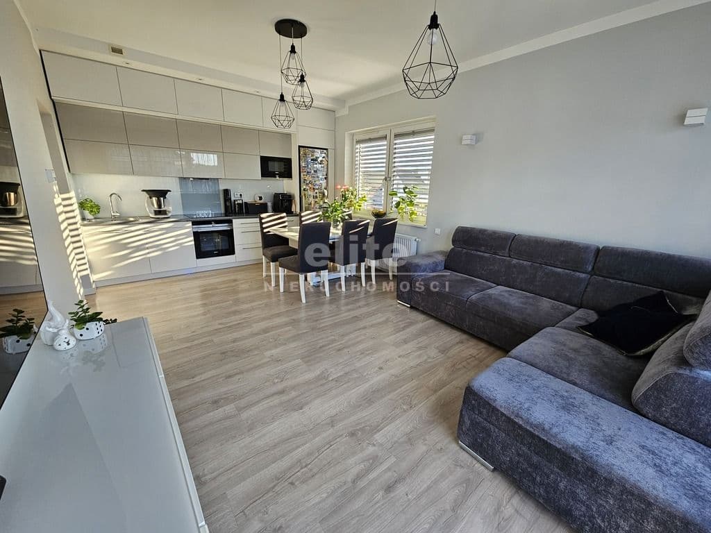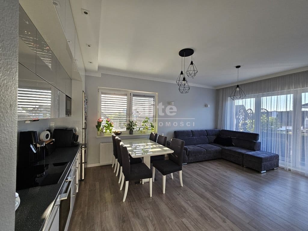 · przestronny salon z aneksem kuchennym oraz wyjściem na duży balkon – idealne miejsce na poranną kawę i letni relaks,