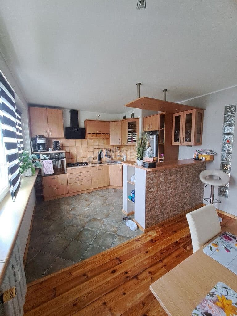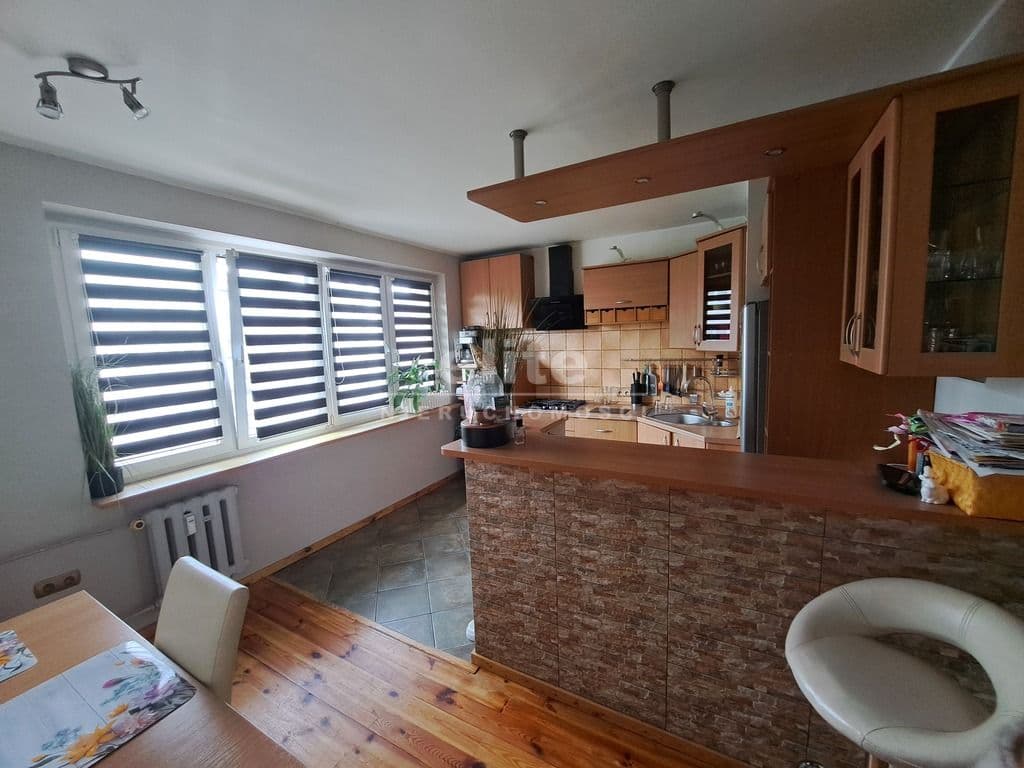 Mieszkanie pierwotnie czteropokojowe, obecnie po połączeniu kuchni z przyległym pokojem powstała duża kuchnia z jadalnią ponadto pokój dzienny, dwie sypialnie, łazienka, toaleta oraz przestronny wygodny przedpokój.