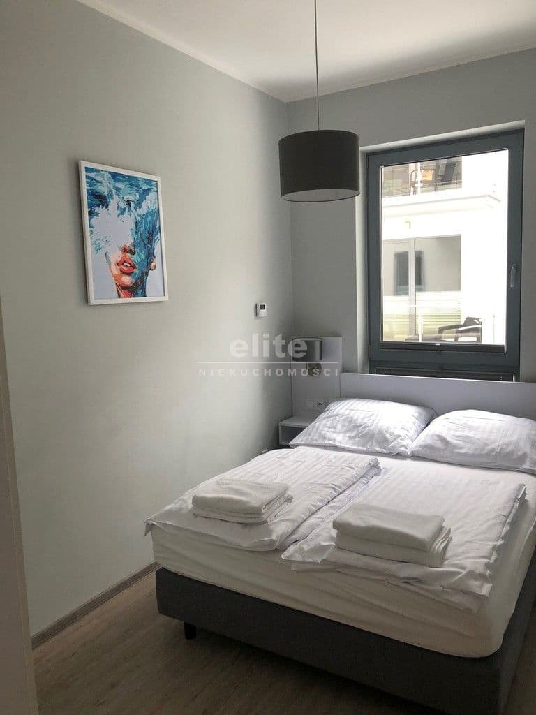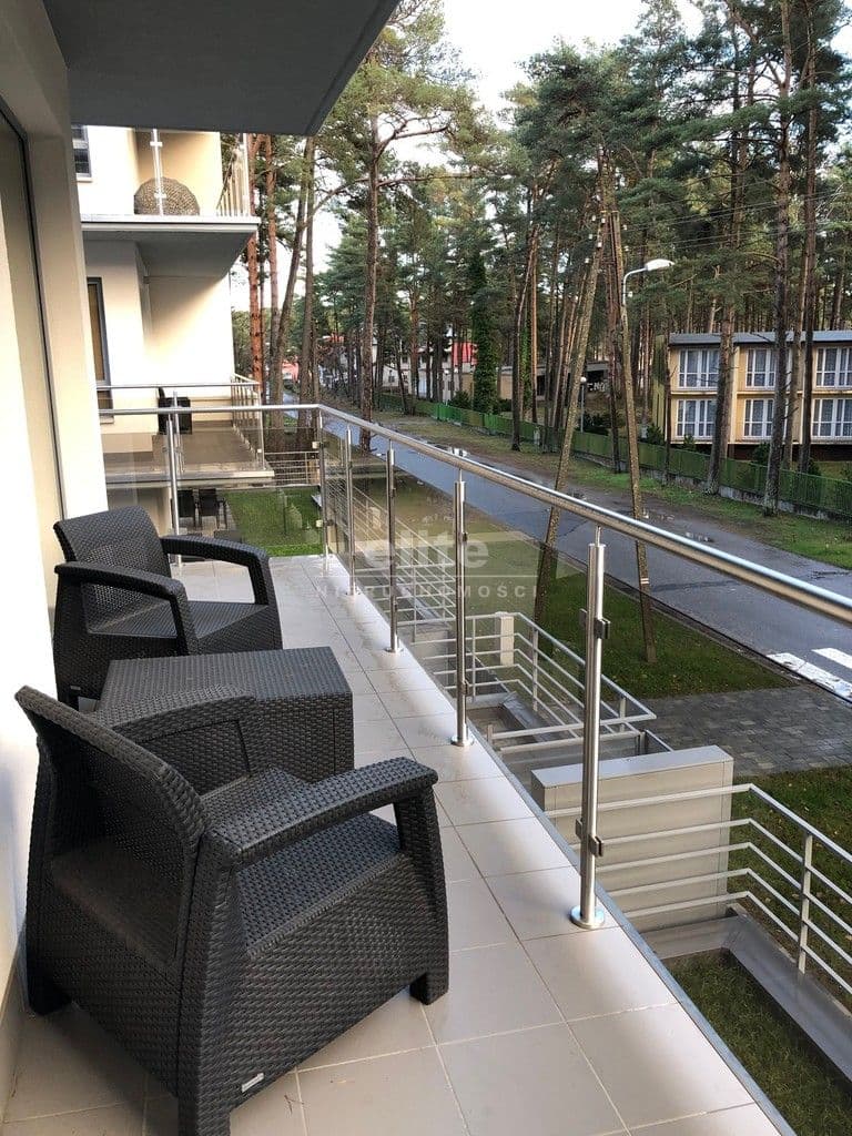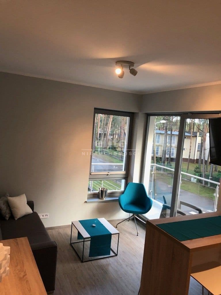 Budynek o nowoczesnej architekturze i niskiej zabudowie powstał w 2017r., przy kompleksie hotelowym, z basenem, SPA i restauracją. W apartamentowcu do dyspozycji użytkowników znajduje się winda . Mieszkanie jest w pełni umeblowane i wyposażone w meble, sprzęty RTV i AGD a także meble tarasowe. Rozkład lokalu jest bardzo funkcjonalny: z przedpokoju o pow. 6m2 z szafą wchodzimy do pokoju z aneksem kuchennym o pow. 14m2, przestronnej łazienki oraz przytulnej sypialni 8m2.
