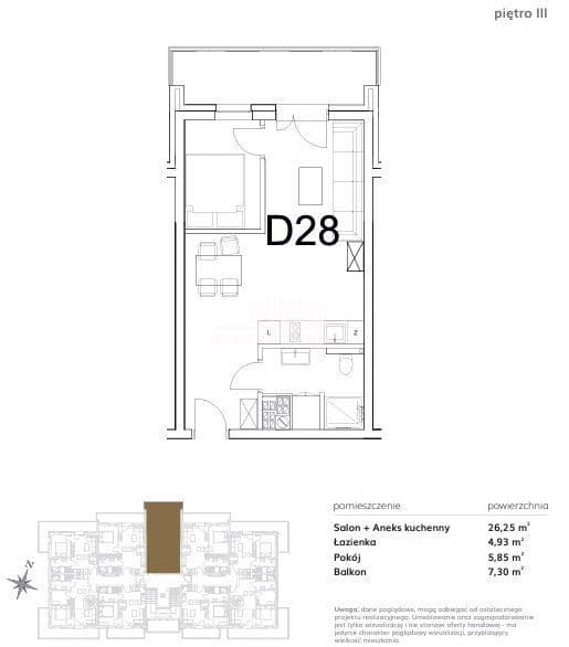 - pokoju dziennego z aneksem kuchennym o pow. 26,25 m2
