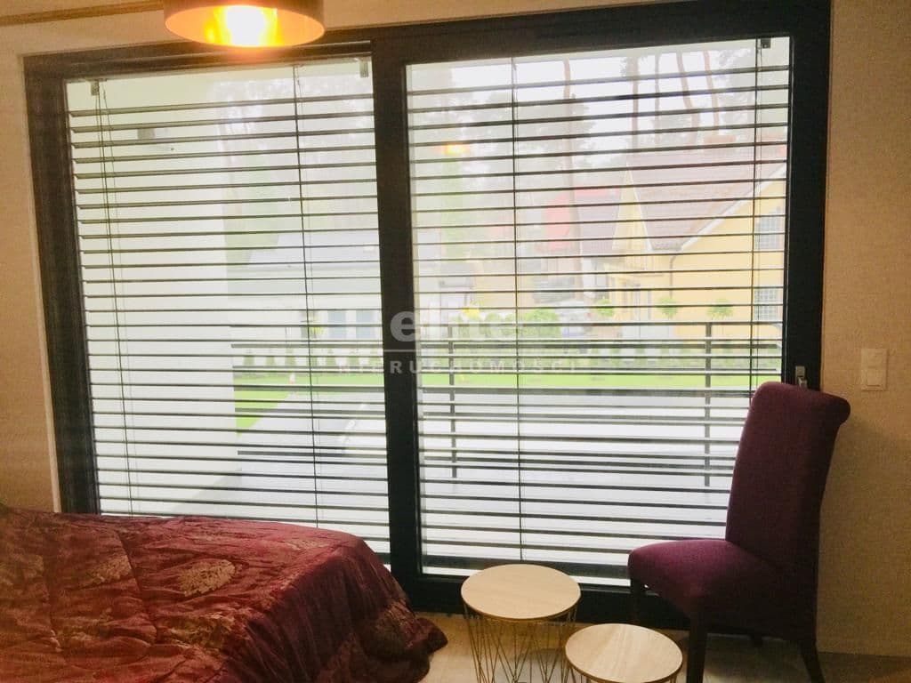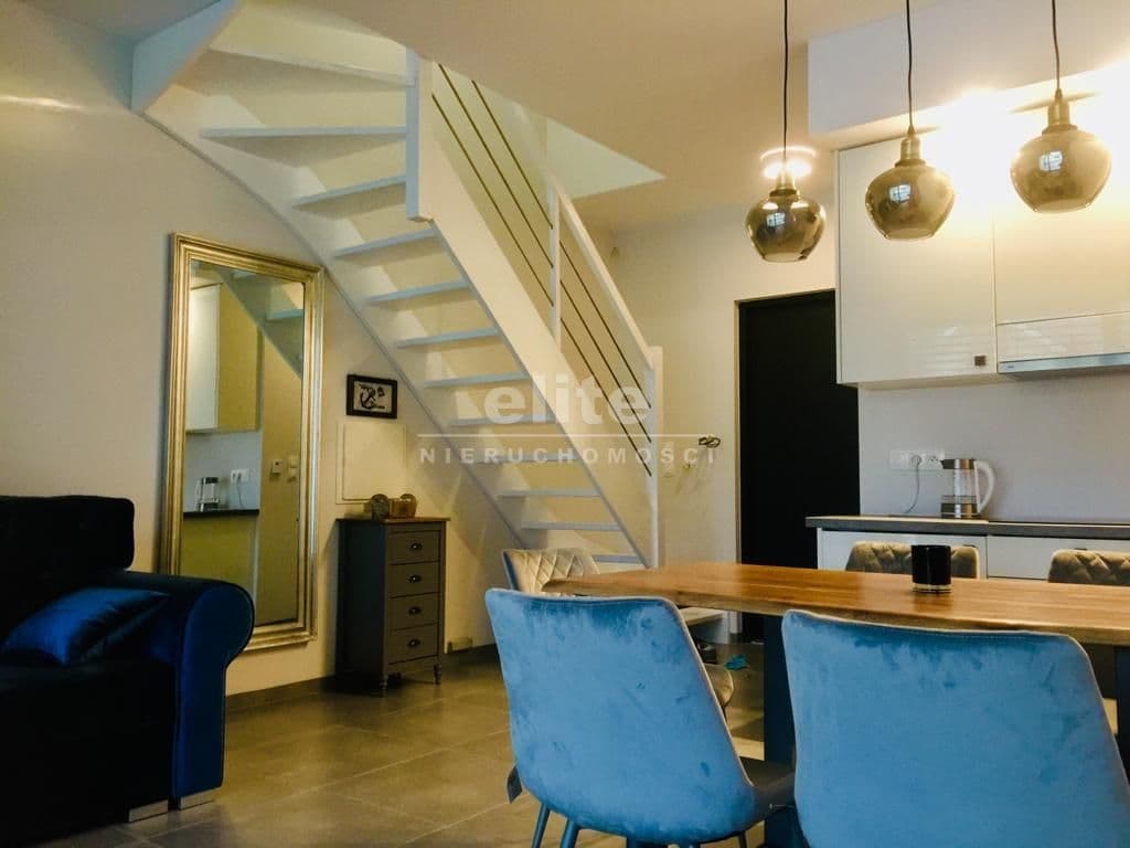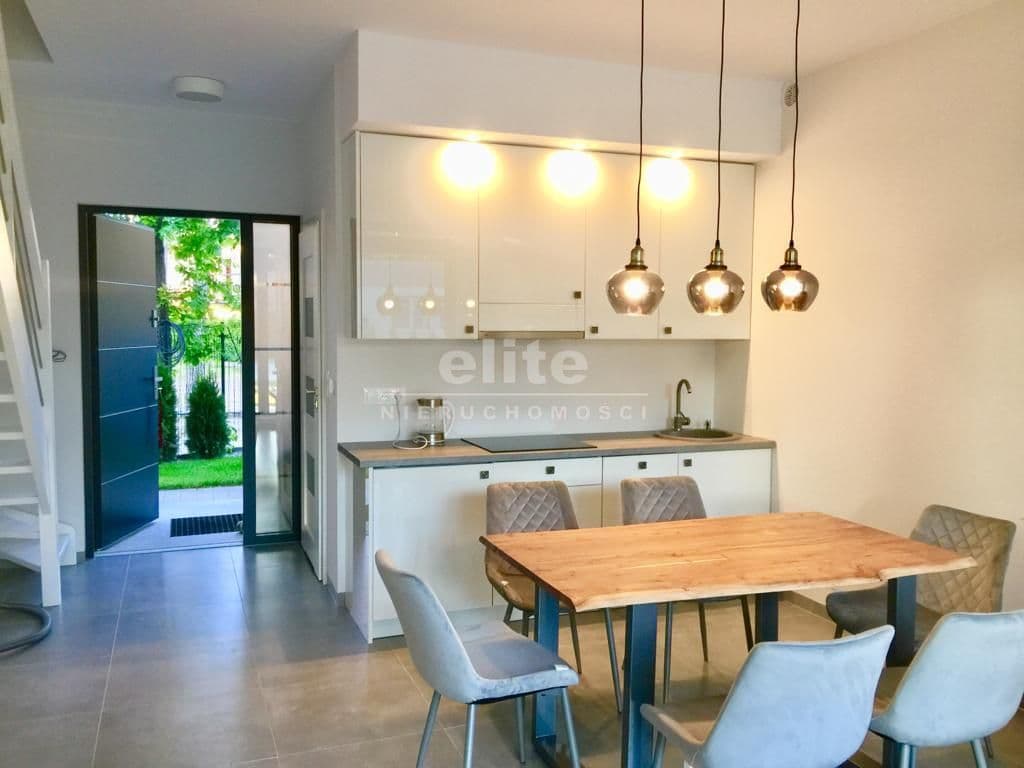 Na parterze pomieszczenia dzienne : salon z aneksem kuchennym, łazienkę, przedpokój oraz drewniane schody prowadzące na 2 poziom. Z salonu wyjście na taras. Doskonałe doświetlenie wnętrza zapewniają duże, bezprogowe okna podłogowe, a dla zapewnienia odpowiedniej prywatności automatycznie sterowane żaluzje oraz system alarmowy. Ogrzewanie podłogowe gazowe na całej powierzchni apartamentu. Drzwi zewnętrzne i wewnętrzne drewniane.