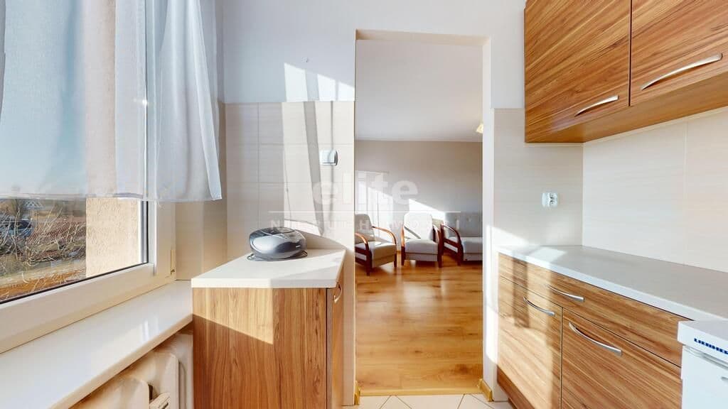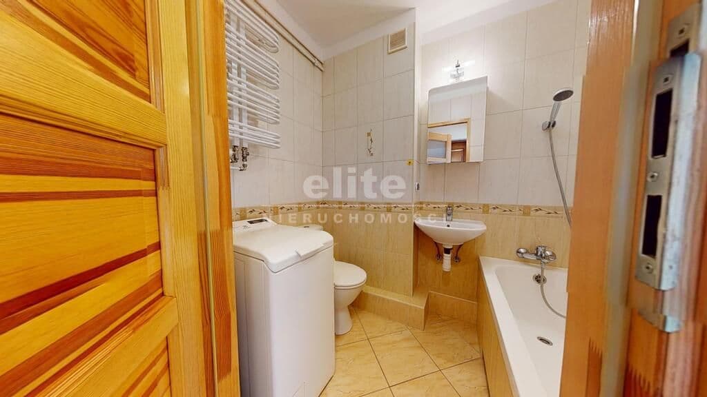 Łazienka z WC w glazurze i terakocie wyposażona w wannę. Kuchnia wyposażona w meble i sprzęt AGD w cenie mieszkania. Podłogi wykończone panelami (wcześniej wykonane pod panele nowe wylewki samopoziomujące). Czynsz administracyjny w chwili obecnej ok 350 zł (mieszkanie niezamieszkałe co powoduje brak zaliczek na zimną i ciepłą wodę po ich doliczniu na jedną osobę czynsz może wzrosnąć do ok. 400 zł). W czynszu ujęte opłaty za fundusz remontowy, ogrzewanie mieszkania, utrzymanie czystości, wywóz śmieci, administrowanie budynkiem. Zużycie gazu opłacane wg. wskazań licznika.