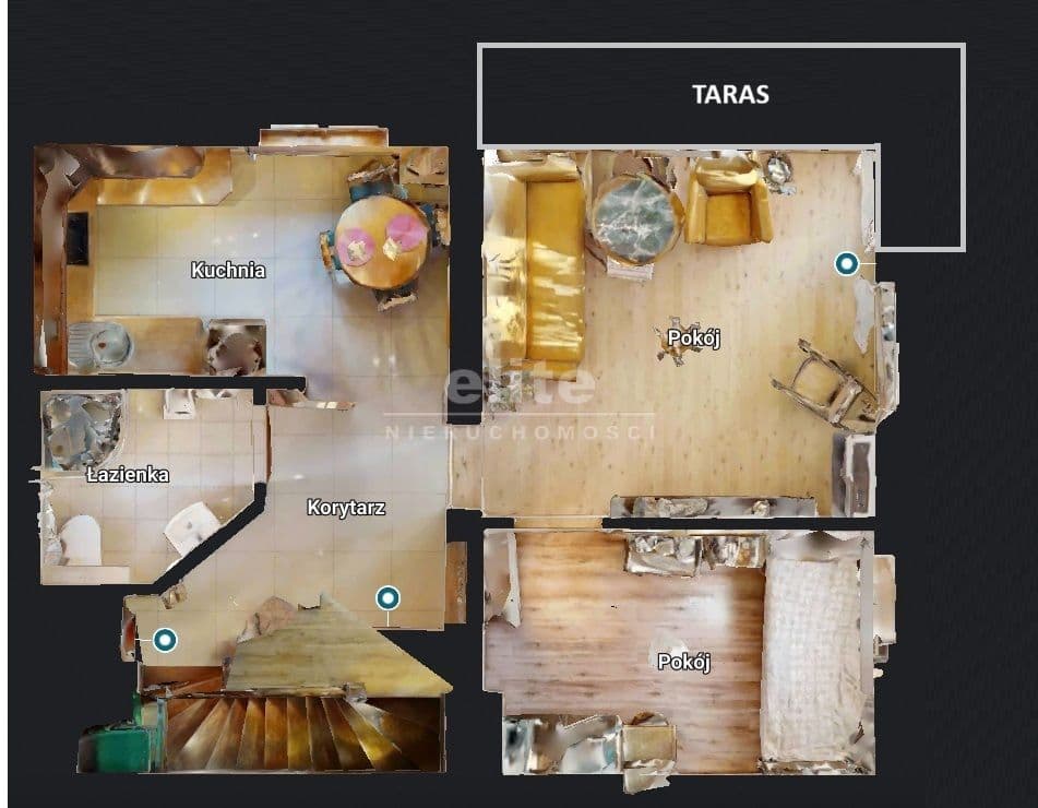 • na drugim poziomie jedno pomieszczenie o pow. 56,8m2, z którego można wyodrębnić co najmniej dwa pokoje.