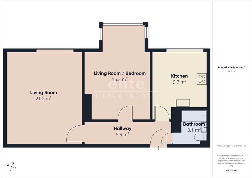 Na powierzchnię 55,52 m2 składają się: