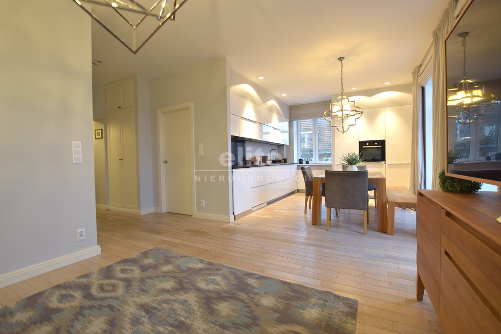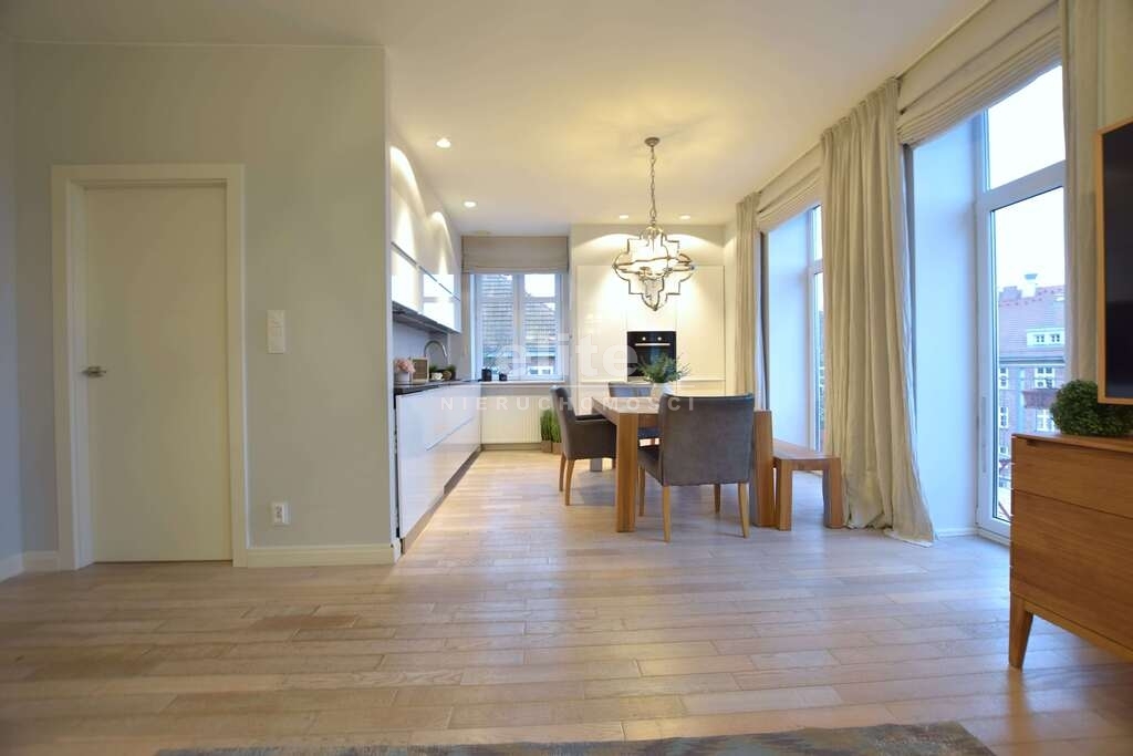 Salon połączony z kuchnią o powierzchni około 30m2 z wyjściem na słoneczny balkon.