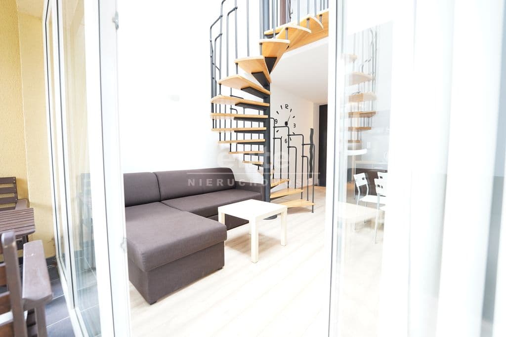 -dwupoziomowy układ(funkcjonalna antresola i efektowne schody spiralne)
