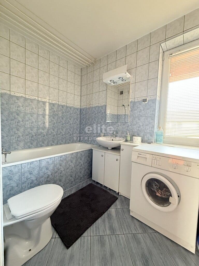 Przestronna łazienka z oknem, w glazurze i terakocie.