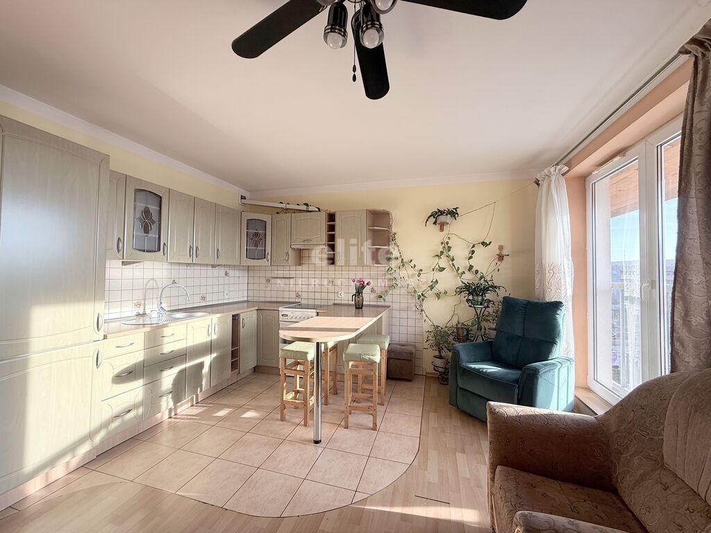 * salon z aneksem kuchennym i wyjściem na słoneczny balkon,