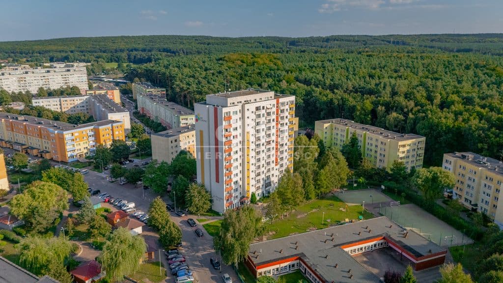dwupokojowe mieszkanie o powierzchni 48 m² , zlokalizowane na 5-tym piętrze wieżowca przy ul. Przyjaźni w Policach. Nieruchomość łączy