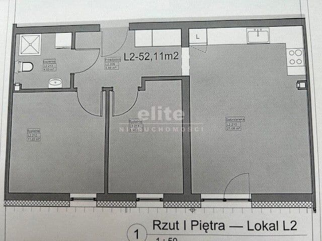 - pokój z aneksem - 21,08 m2,