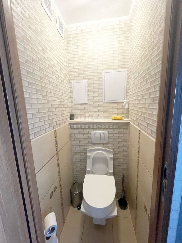 Łazienka i WC zostały całkowicie wyremontowane i wykończone w glazurze oraz terakocie w nowoczesnej, neutralnej kolorystyce.